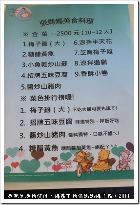▼張媽媽的合菜菜單,NTD1000及NTD2000。